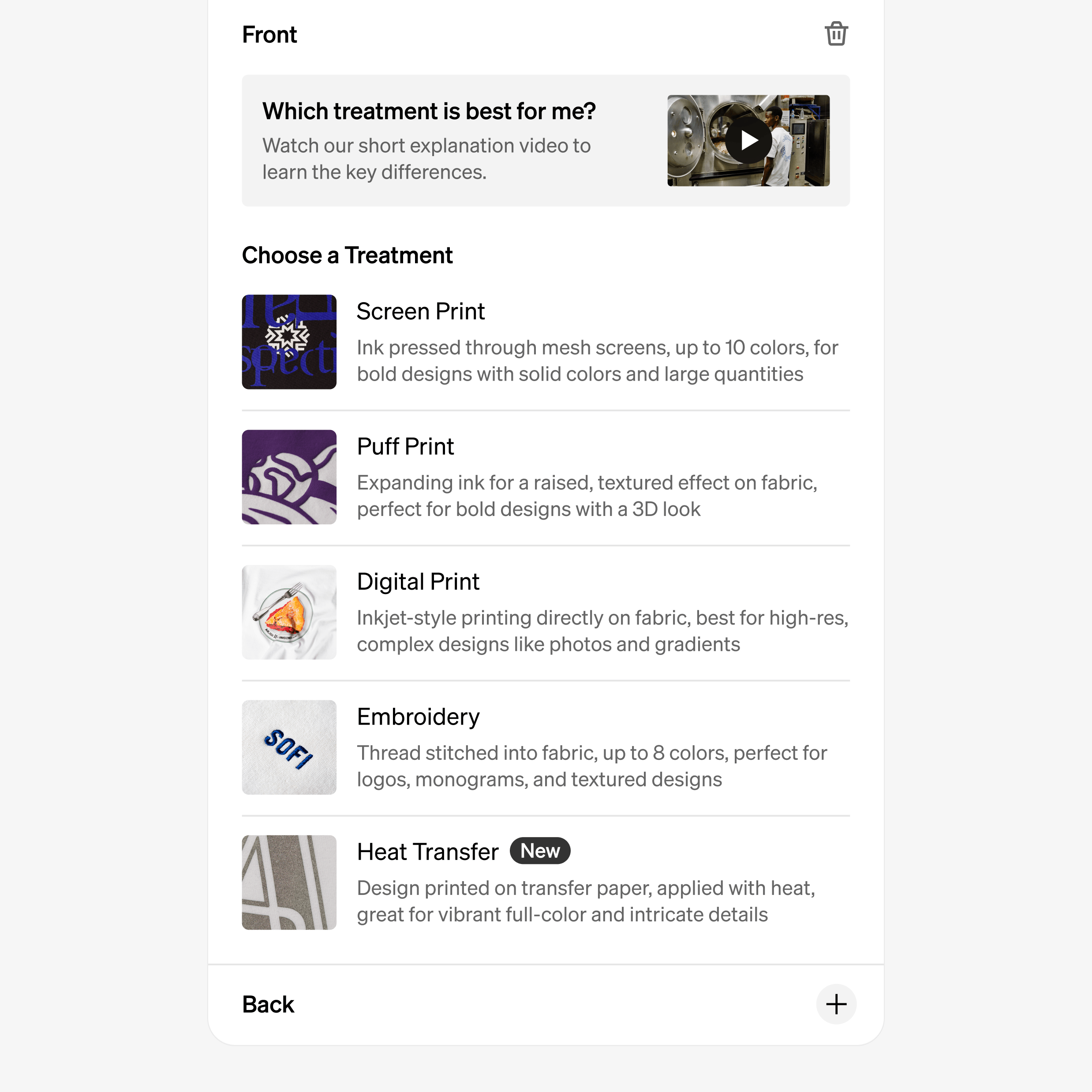 To make the product experience more accessible, we focused on improving how customization options are explained and showcased. By refining the UX to reveal options and steps progressively — rather than relying on video tutorials — we ensured the tool feels playful, intuitive, and not overwhelming. Finally, we improved the checkout flow to give customers a clear overview of their order, along with transparent pricing and delivery time estimates.